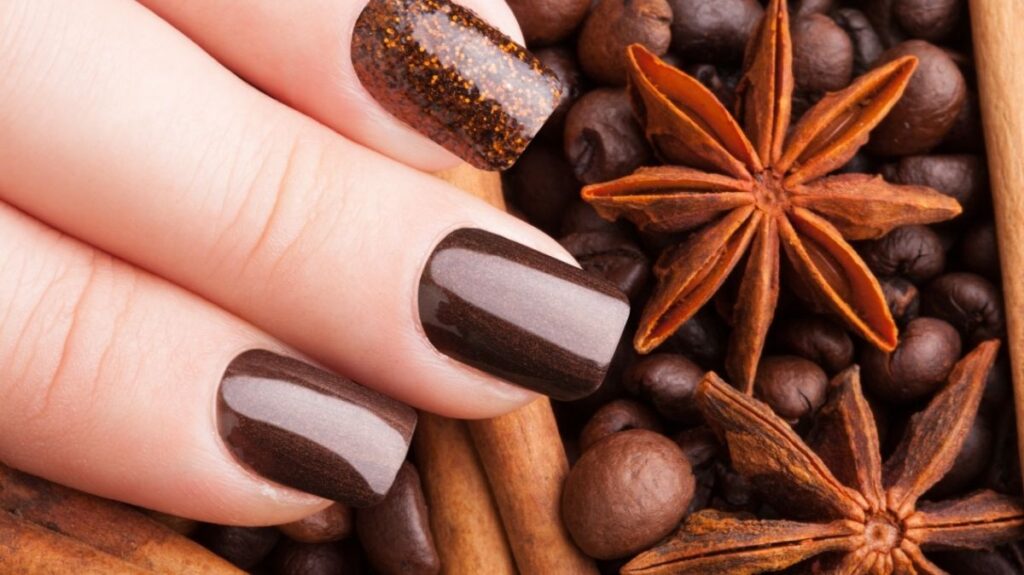 If you love artistic nail designs, try the brown marble trend. Blend cream, coffee, and chocolate tones to create a marbled swirl that looks both chic and natural. The result feels expensive and pairs beautifully with gold jewelry. This design works best on longer nails but can be adapted for short nails too. Every swirl is unique, giving your manicure a custom, one-of-a-kind look.